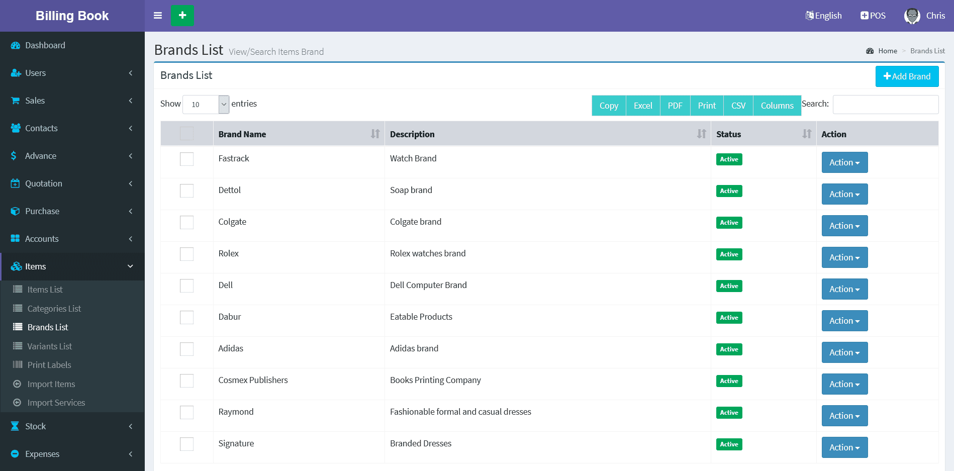 Adding a Brands it's a very easy task. Enter Brand name, description(Optional field) and click on Save button.