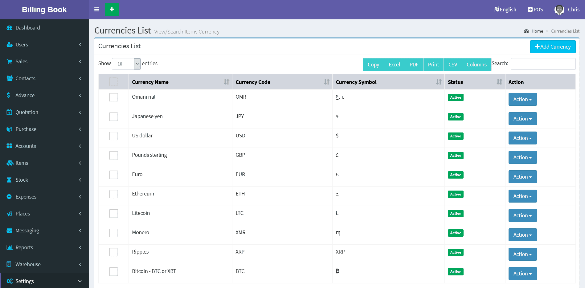 Currency List :