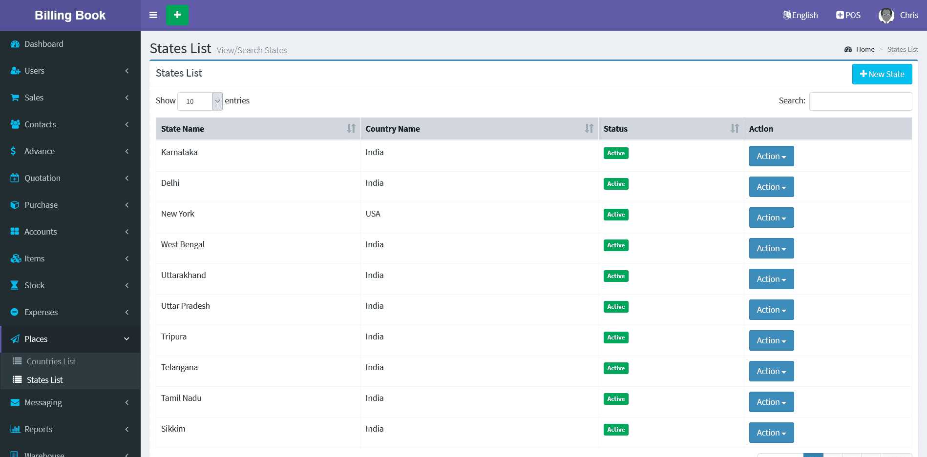 You can view the all the added State list and you can manage State list by Delete & Edit actions.